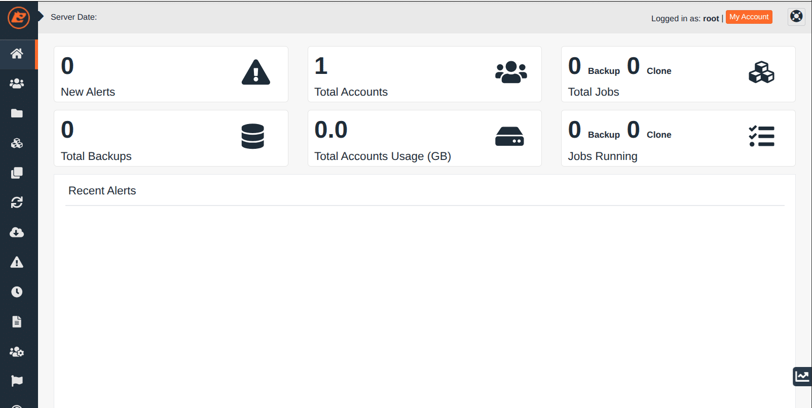 Para poder llevar un seguimiento del estado de los respaldos/restauraciones que se han realizado, es recomendable consultar el apartado «Logs» (icono de fichero), el cuál podés encontrar en la barra de la izquierda.