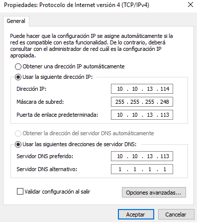 - DNS1: pondrás un nameserver a tu elección, en caso de querer un segundo deberás escribir el parámetro DNS2.