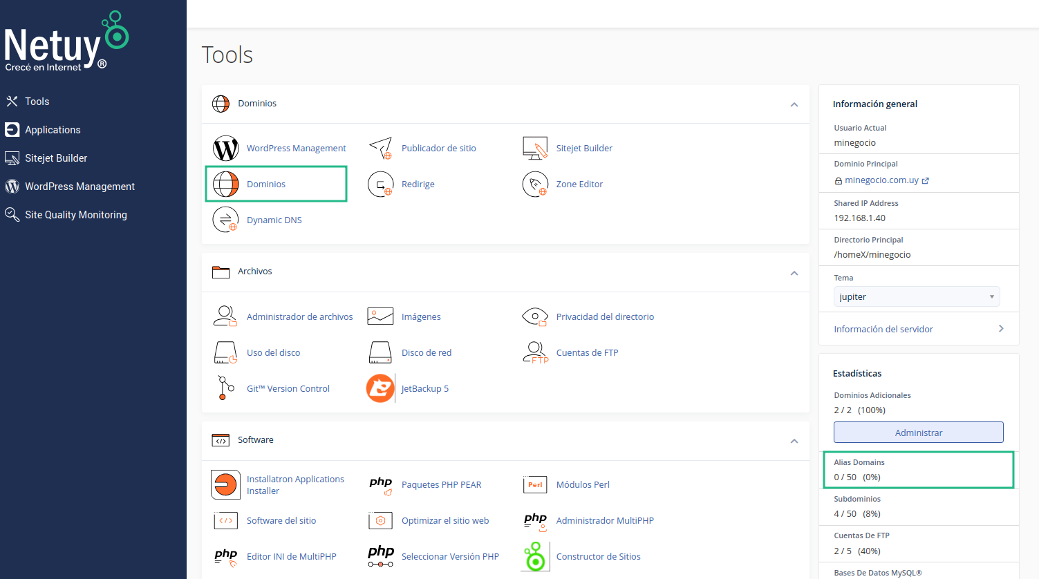 - Es necesario contar con espacios de alias de dominio disponibles en tu plan de hosting.