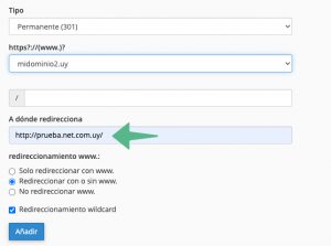 Cliqueá en la opción Añadir y listo, ya tendrás tu nuevo alias de domino redirigido a la URL que deseas.