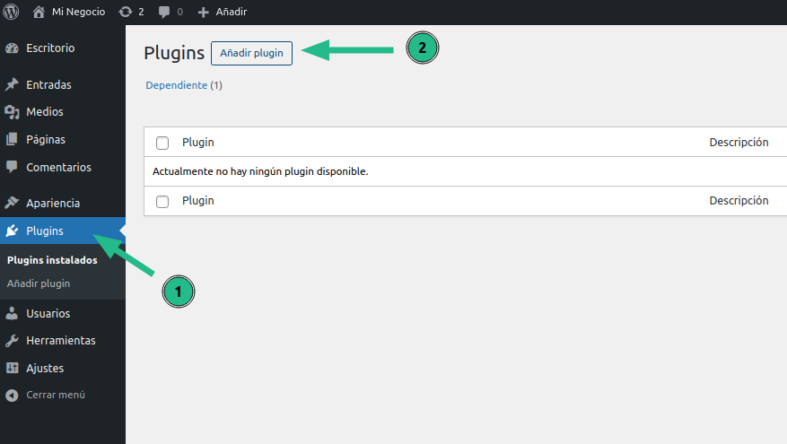 - Andá a Plugins → Añadir plugin.