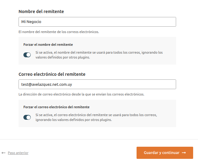 (a menos que utilices un proveedor específico como Gmail, Outlook, etc.). - Hacé clic en Guardar y continuar →.