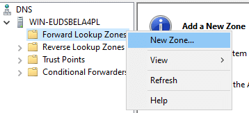 3. Ahora hacé clic derecho en «Forward Lookup Zones» y seleccioná «New Zone».