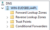 2) En el Administrador de DNS, desplegá el nombre de tu servidor (en este caso de ejemplo WIN-EUDSBELA4PL).
