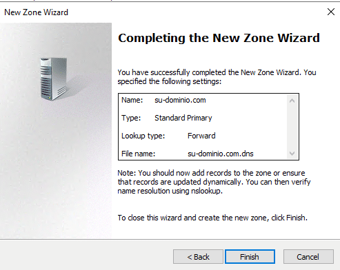 • Zone Type: Primary Zone (permite crear y manejar registros de los dominios delegados a tu servidor).