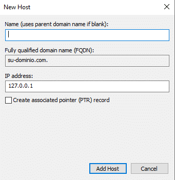 3. Para finalizar, hacé clic en Add Host, si todo está en orden, el registro se habrá agregado y podrás revisarlo haciendo doble clic en la zona DNS de tu dominio.