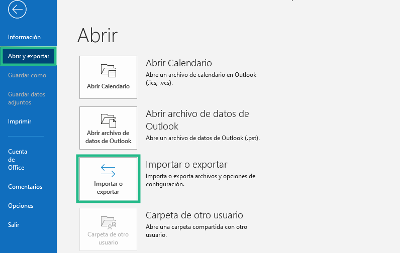 Hacé clic en “Archivo”, luego en “Abrir y exportar”, por último seleccioná “Importar” o “Exportar”.