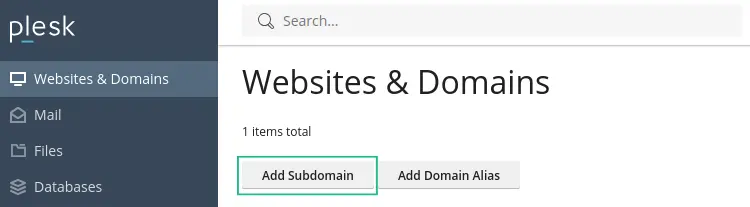 Dirigíte al apartado «Website & subdomains» y hacé clic en el botón «Add subdomain».
