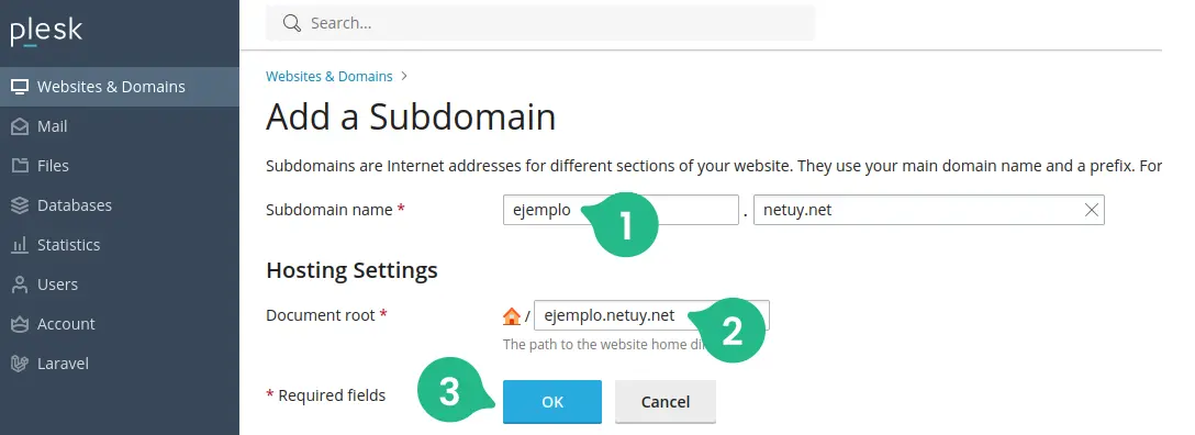 - Ingresá el nombre del subdominio.