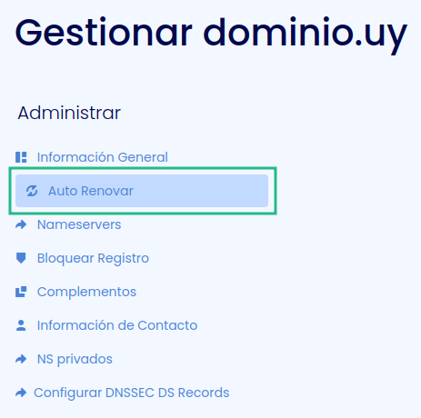 En el menú lateral izquierdo hacé clic en la opción Auto Renovar.