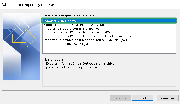 Elegí Exportar a un archivo y hacé clic en Siguiente.