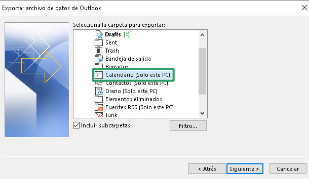 Para exportar tus calendarios en Outlook, seguí estos pasos:
