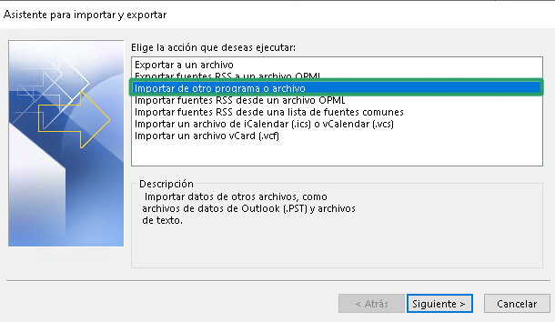 Elegí Importar de otro programa o archivo y hacé clic en Siguiente.