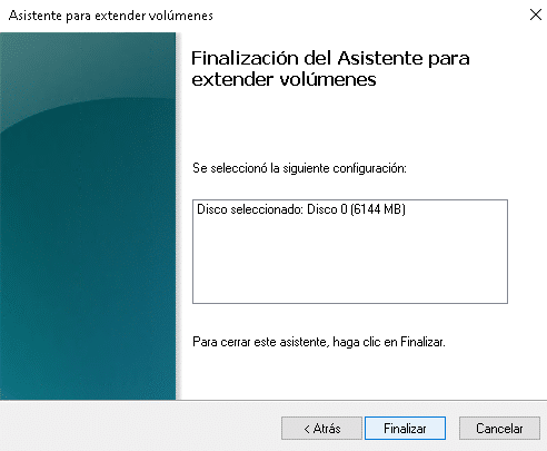 Si seguiste los pasos correctamente, la partición seleccionada habrá sido extendida y ahora contará con el nuevo espacio disponible.