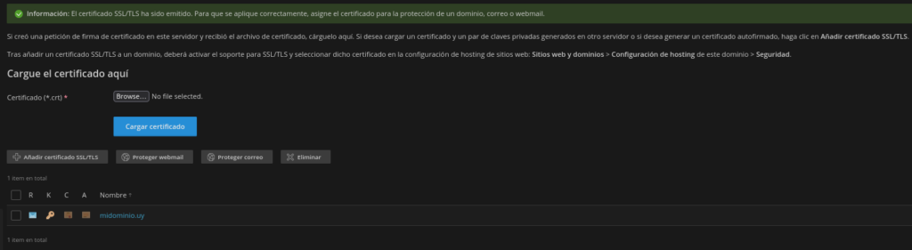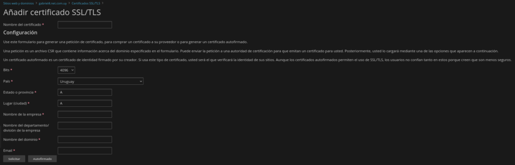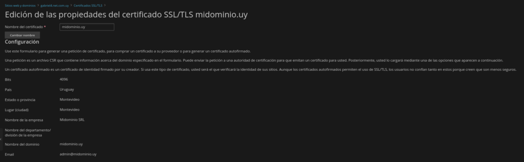 • Nombre del dominio: dominio completo a certificar. Ejemplo: midominio.uy