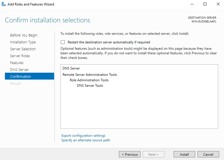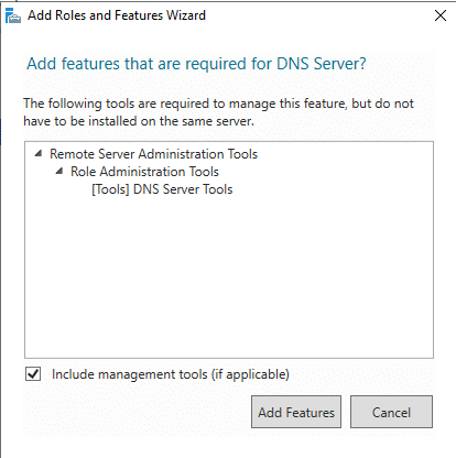 En primer lugar, es necesario instalar el servidor DNS, esto se gestiona fácilmente desde la herramienta Server Manager.
