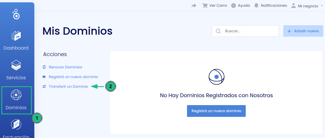 2. Seleccioná la opción Transferir un Dominio.