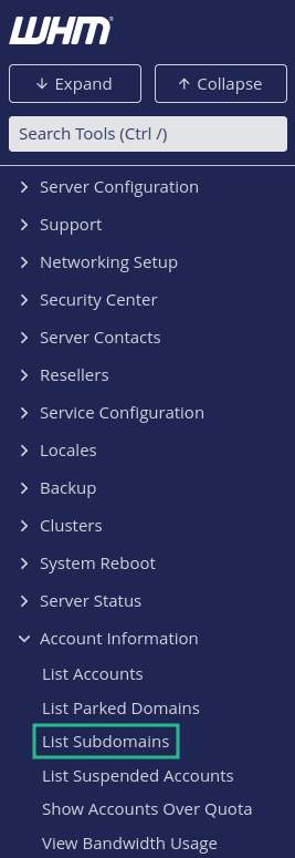 Si tenés un VPS Linux con WHM, podés consultar fácilmente todos los subdominios alojados en el servidor.