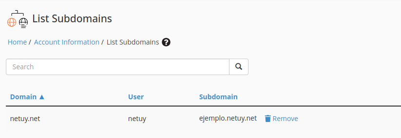Si todo salió bien, el sistema mostrará todos los subdominios alojados en tu servidor.