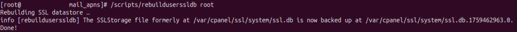 Generá nuevos certificados SSL para cPanel y sus servicios internos utilizando el siguiente comando: