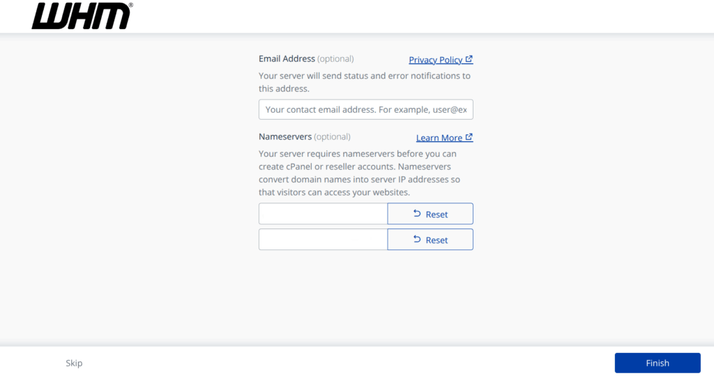 Debido a que ya configuramos los NS en los pasos previos, podés usar el botón «Finish» para culminar la configuración inicial.