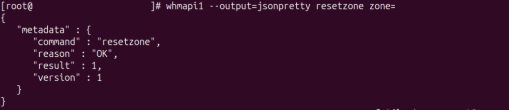 whmapi1 --output=jsonpretty resetzone zone=miservidor.com