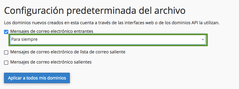 Hacé clic en Aplicar a todos mis dominios para aplicar la configuración predeterminada a todos sus dominios.